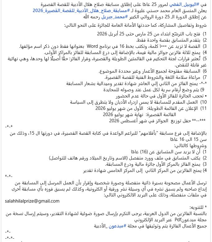 مسابقة صلاح هلال الأدبية للقصة القصيرة