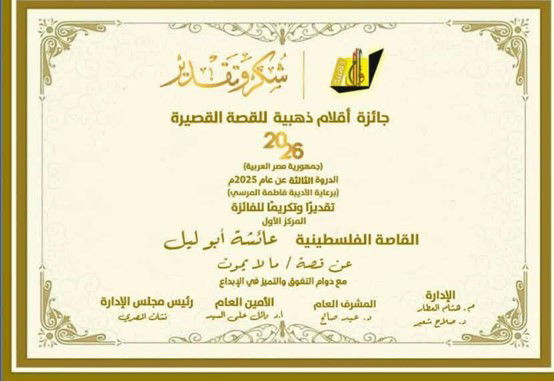 في تظاهرة ثقافية جمعت بين عراقة المكان وحداثة الإبداع الرقمي، استضافت نقابة الصحفيين بالقاهرة حفل توزيع جوائز مسابقة القصة القصيرة "أون لاين"، والتي نظمها صالون أقلام ذهبية الأدبي. أقيم الحفل برعاية مؤسس الصالون الروائي نشأت المصري، وتحت رعاية الروائية فاطمة المرسى، وسط حضور حاشد من قامات الأدب والمثقفين من مصر والعالم العربي.